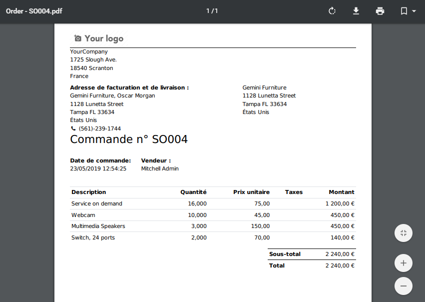 À savoir : L'aspect de vos devis est administrable dans Odoo