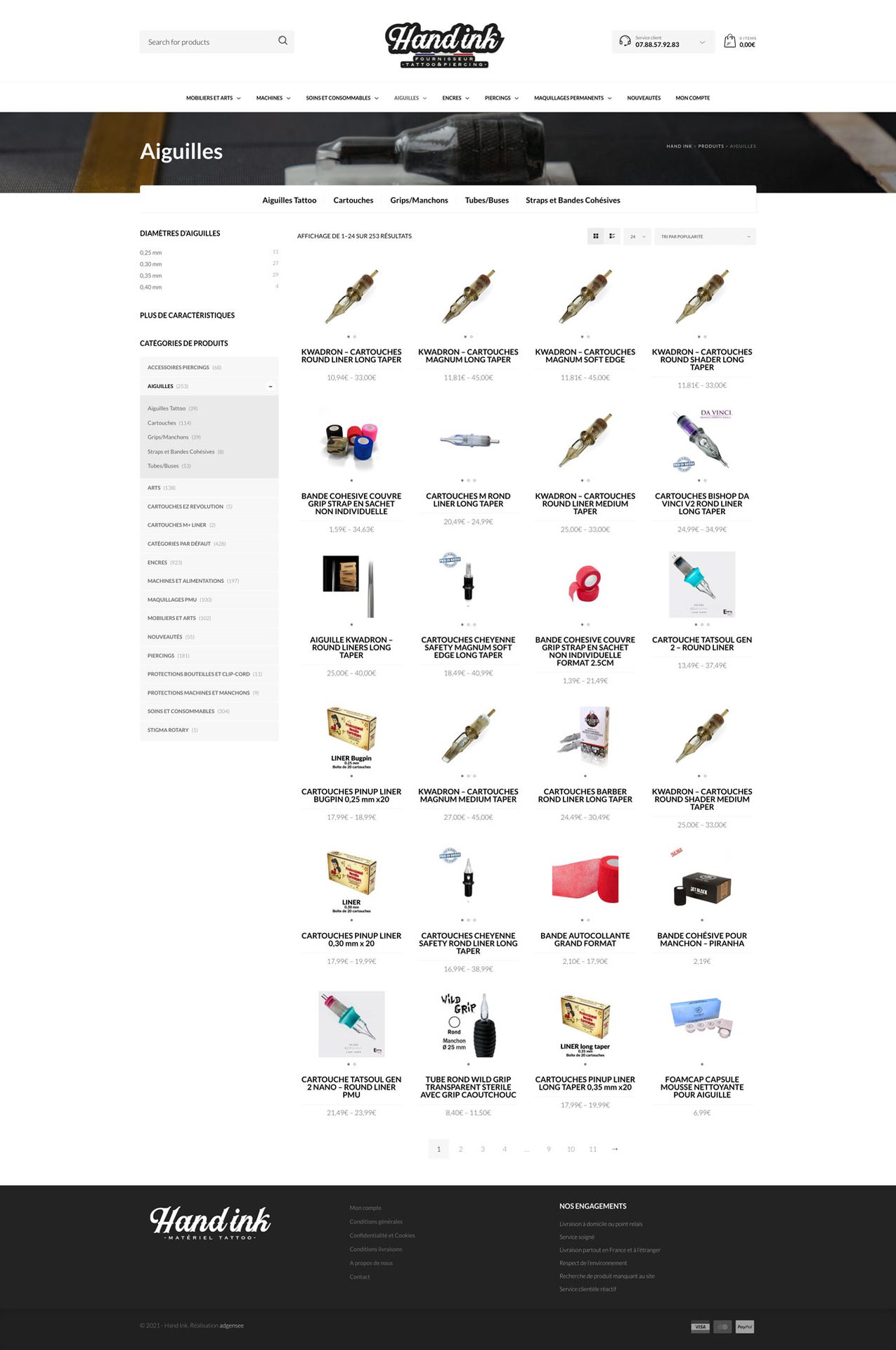 Pour ce projet c’est l’enseigne Hand ink qui fait appel à nous, spécialisé dans le e-commerce et dans le monde du tattoo et du piercing.